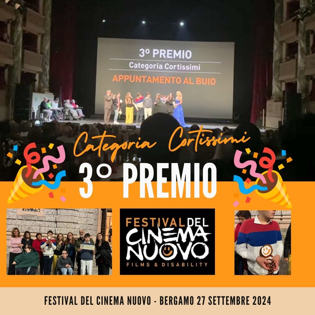 Siamo molto felici di annunciare che il nostro corto “Appuntamento al buio”, realizzato con i ragazzi delle nostre case famiglia, selezionato tra i finalisti della categoria “Cortissimi” del Festival del Cinema nuovo, ha vinto il terzo premio!!!