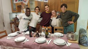 conosciuti meglio, abbiamo scherzato, studiato, cantato, mangiato insieme, abbiamo trovato i primi equilibri che ci permettono di intrecciare i tanti impegni che riempiono le nostre vite. Ci siamo divisi i piccoli servizi settimanali all’interno della casa e ognuno ha scelto un giorno per cucinare per tutti la sera. Anche quando le nostre giornate ci obbligano a salutarci a colazione per non rivederci più per tutto l’arco della giornata, ritrovarsi per il momento del pasto serale è importante perché ci ricorda di vivere insieme.